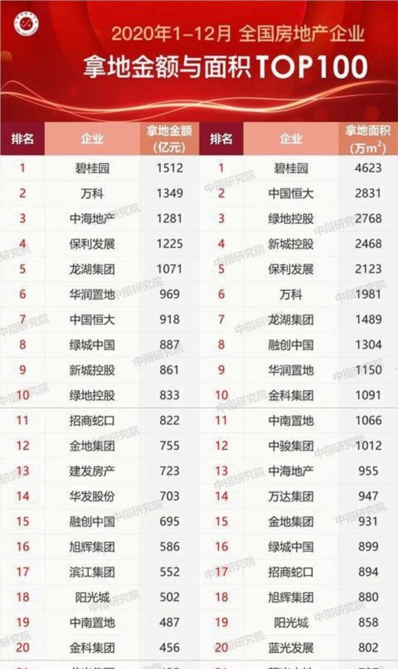 受迫于降负债的压力,去年融创确实在土地市场收敛了很多。机构发布的去年房企拿地榜单中,融创拿地排在第15位,比2019年下降了超过30%。