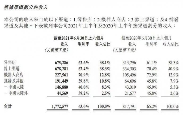 泡泡玛特渠道收入及毛利率情况,来源:公司财报