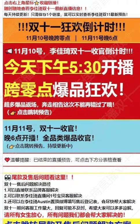 今年双十一开播之前,李佳琦做了个非常详细的Excel表格,用户可以直接点击产品名称,跳转到相关购买页面,获取更为详尽的产品资讯。这一度让网友感叹“想和李佳琦学Excel”。