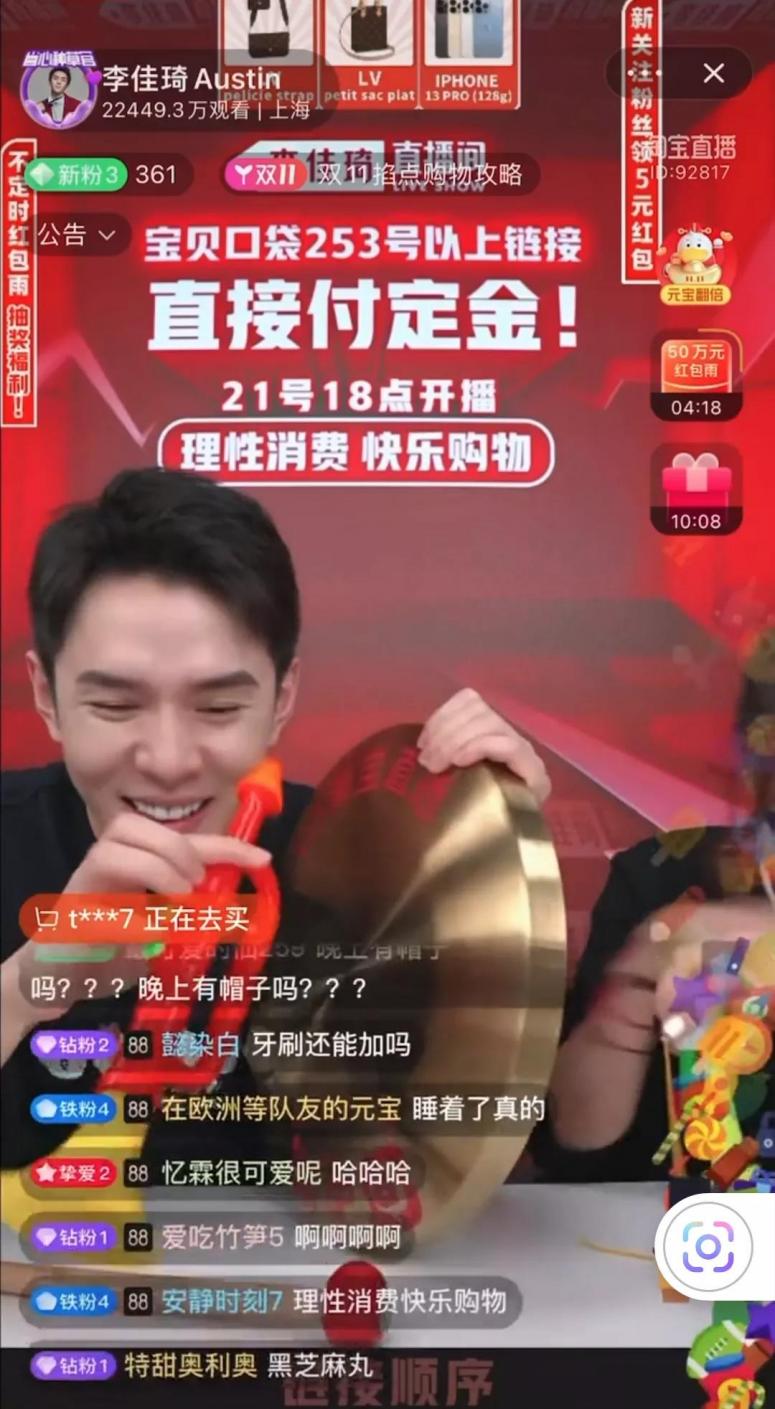 李佳琦直播敲锣