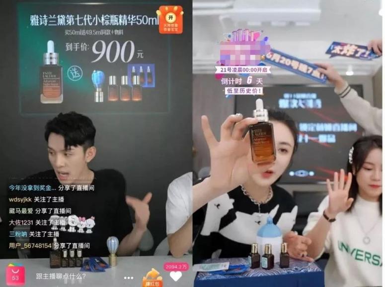 李佳琦(左)、薇娅(右)直播间介绍雅诗兰黛小棕瓶