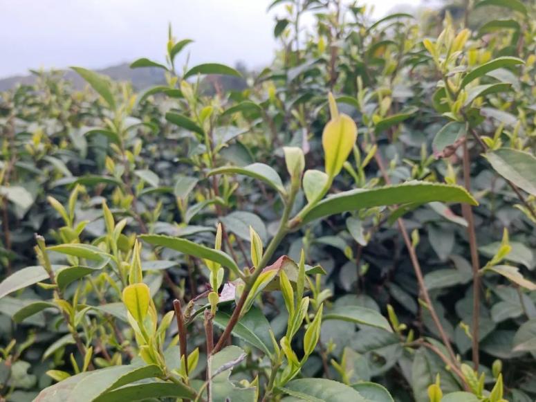 高温下繁茂生长的茶树,枝头顶出众多鲜叶