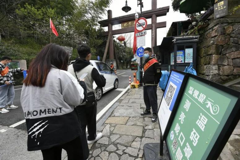 2022年3月18日,杭州,进入采茶季的龙井村对所有进村人员执行严格的新冠疫情防控措施。