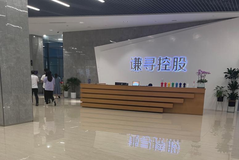 下午三点,有不少员工拎着包或拖着行李箱进出公司。门口保安管理严格,进入公司需要工牌或者访客码。《凤凰WEEKLY财经》寻机进入大楼后,“谦寻控股”四个银色发光大字立刻进入眼帘。一楼有不少座椅供人休息,有几个员工正围坐在一起闲聊。“618”电商节将至,但从谦寻总部一楼大厅的环境布设中,感受不到电商大促的气氛。
