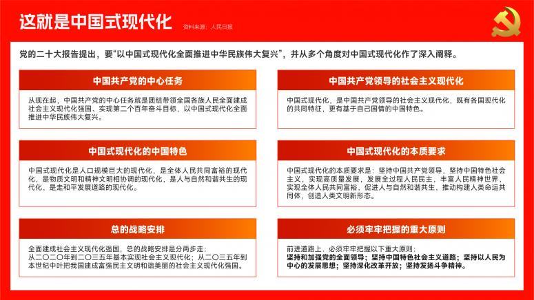 此次二十大报告中,习近平进一步阐述了“中国式现代化”,强调要“实现全体人民共同富裕”,并明确中国式现代化非西化,中国不会走封闭僵化的老路,也不会走改旗易帜的邪路。