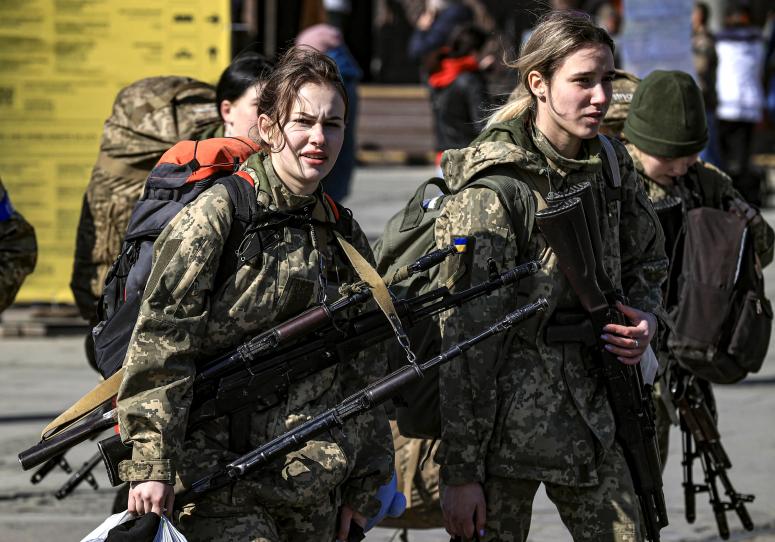 2022年3月24日,乌克兰利沃夫,由于俄军持续的袭击,乌克兰女兵正在前往前线。