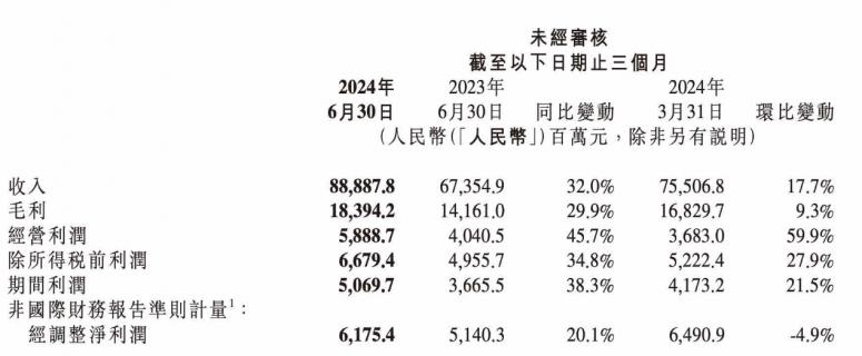 据小米集团于8月21日在港交所发布的公告显示,2024年第二季度,小米集团总收入为889亿元,同比增长32%。集团经调整后的净利润为62亿元,同比增长20.1%。此外,2024年上半年,小米集团营收1643.95亿元,同比增长近30%。经调整净利润为126.7亿元,同比大增50%左右。这也意味着,小米集团在上半年,平均每天净赚约7000万元。