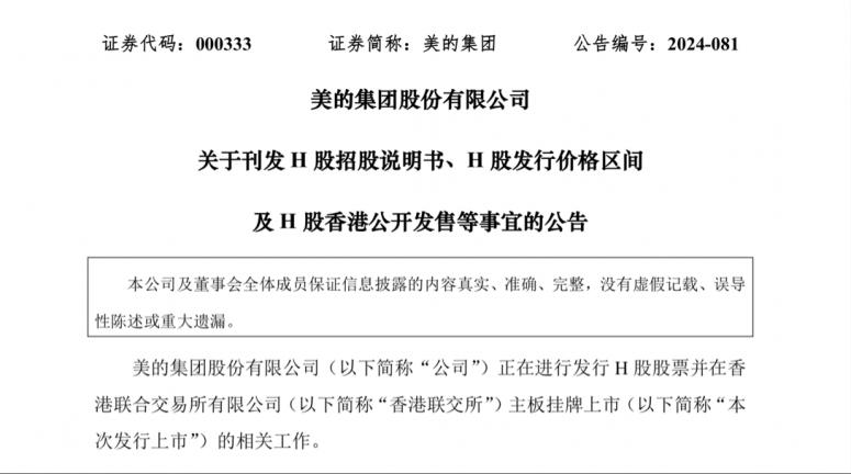 美的集团拟全球发售4.92亿股H股,将于9月17日上市