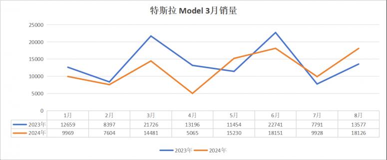 3的单月最高销量为18151辆,但上年同期则为22741辆。