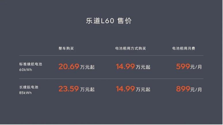 14.99万元起、搭配电池租用方式(BaaS)的乐道L60购买价格一经发布,瞬间成为整场发布会欢呼声和惊喜声最大的时刻。