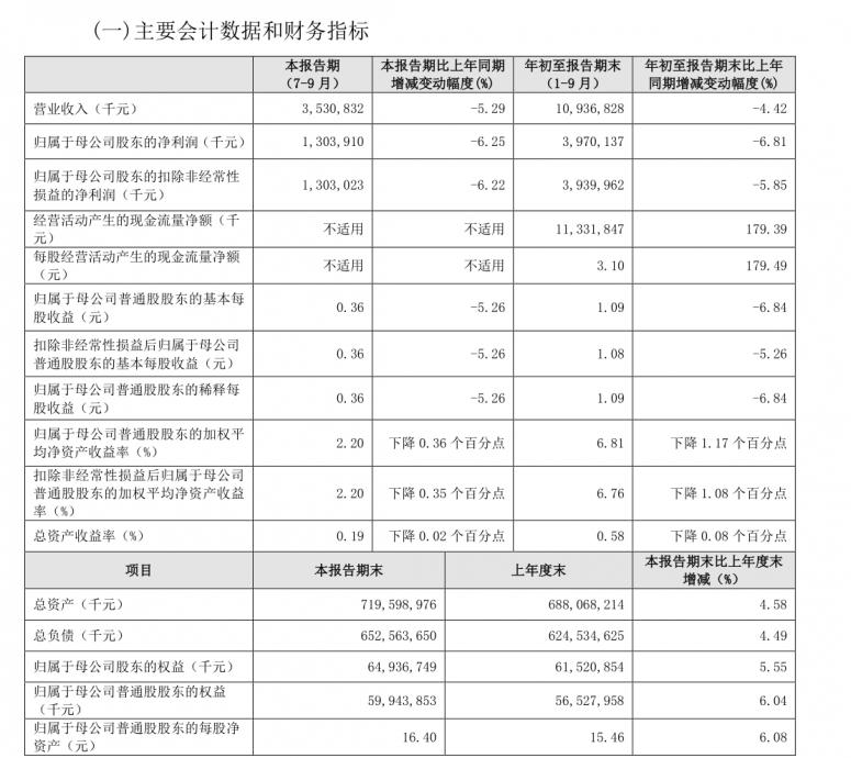 贵阳银行前三季度营收、净利润双下滑 利息净收入同比降15.61%