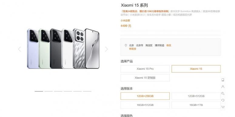 小米官网显示,小米15标准版起售价为4499元
