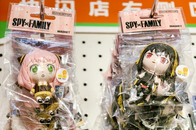这样的情况在行业内已司空见惯。查理斯记得,2022年《间谍过家家》在国内火起来,第一批周边就是贴纸、亚克力立牌、挂扣徽章等产品,“我记得他们当时紧急加印,3周把东西做出来。虽然不确定具体产量,但起码是万级。”