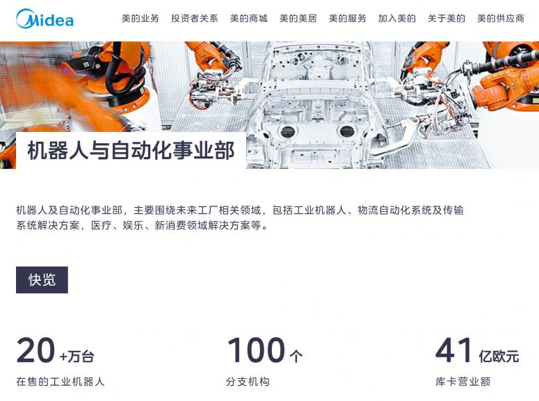 美的机器人与自动化事业部 来源/美的集团官网截图
