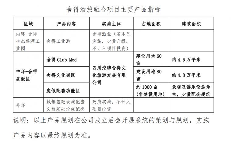 来源/《舍得酒旅融合项目可行性研究报告》截图