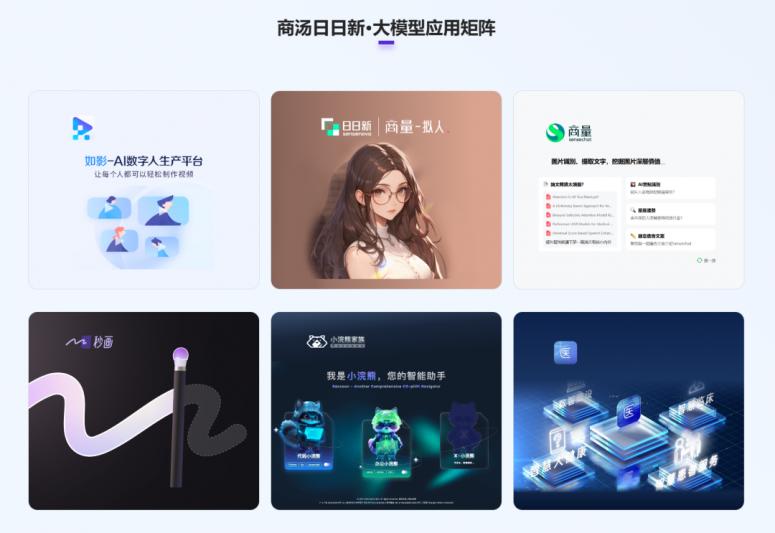 商汤日日新大模型应用矩阵 来源/官网截图
