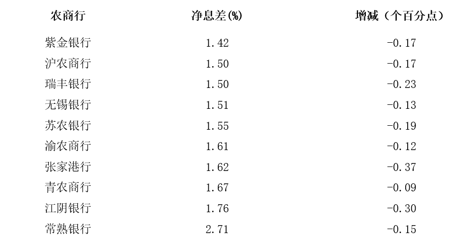 A股上市农商行2024年净息差