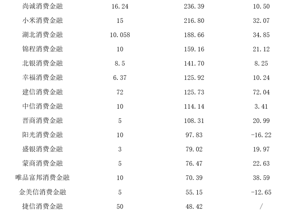 值得注意的是,自2024年4月18日起,国家金融监督管理总局发布的《消费金融公司管理办法》正式施行,明确规定消费金融公司的注册资本最低限额应达到10亿元人民币或者等值的可自由兑换货币。截至目前,盛银消费金融、蒙商消费金融、金美信消费金融、晋商消费金融、幸福消费金融和北银消费金融6家公司注册资本尚未达到新规要求。