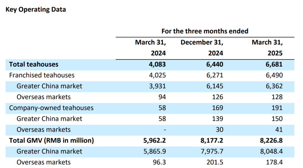 作为率先上市的新茶饮代表,霸王茶姬是首批发布2025年Q1财报的品牌之一。