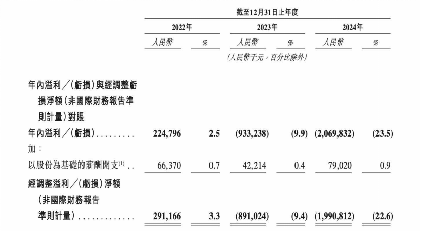 从披露的财务数据来看,用友2022年、2023年及2024年的总收入分别为人民币88.89亿元、94.42亿元和88.17亿元。尽管用友在2022年录得年内利润2.24亿元,但在随后的2023年和2024年则录得亏损9.33亿元和20.69亿元,且2024年的经调整净亏损(非国际财务报告准则计量)依旧达19.9亿元。