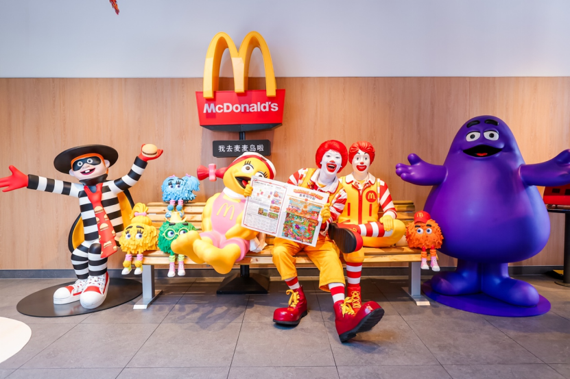 一头火红头发,身着鲜黄色工作服的麦当劳叔叔,紫色外表、性格憨厚的奶昔大哥,头戴黑眼罩的汉堡神偷,以及留着两个辫子的大鸟姐姐一同亮相,让现场的气氛不断酝酿。上述场景发生在位于北京朝阳公园南路的“麦麦岛”上。