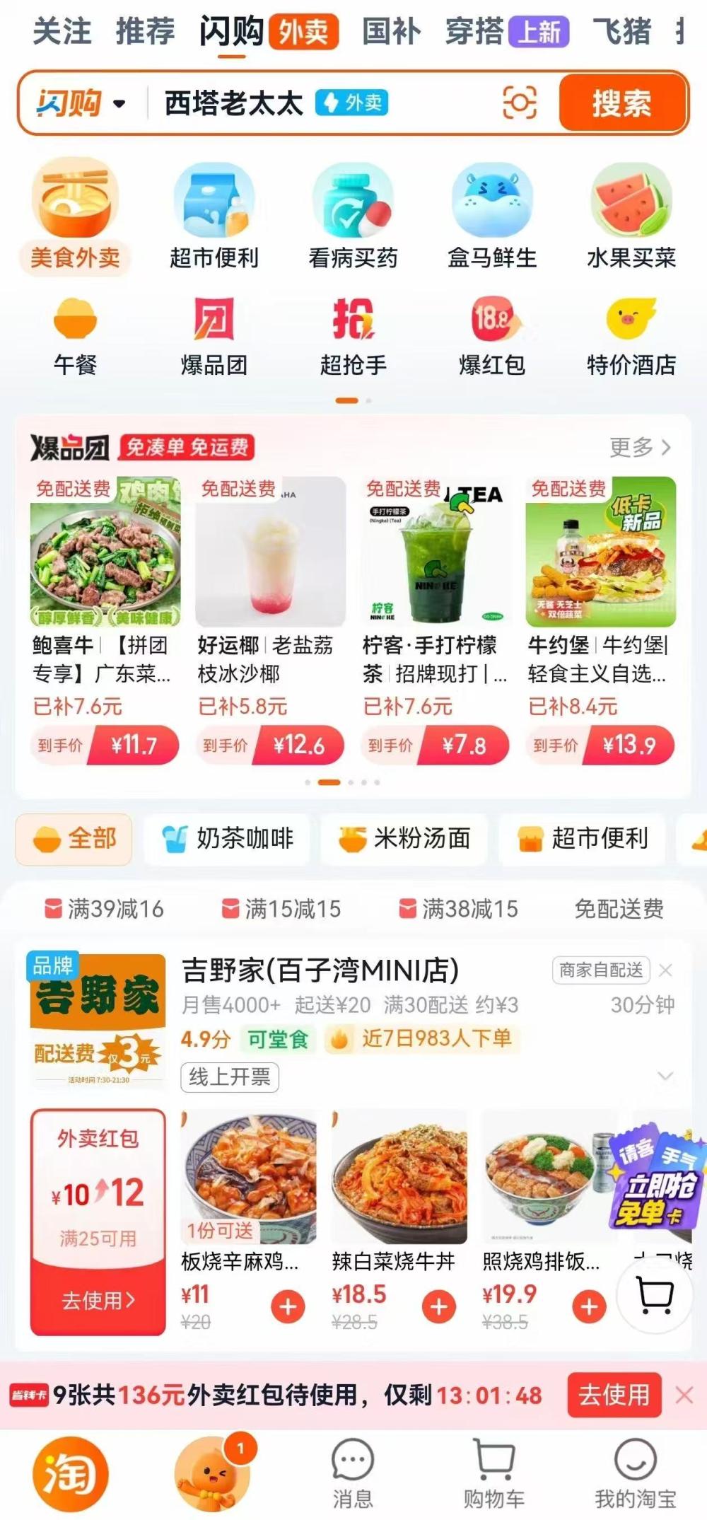 淘宝闪购页面截图