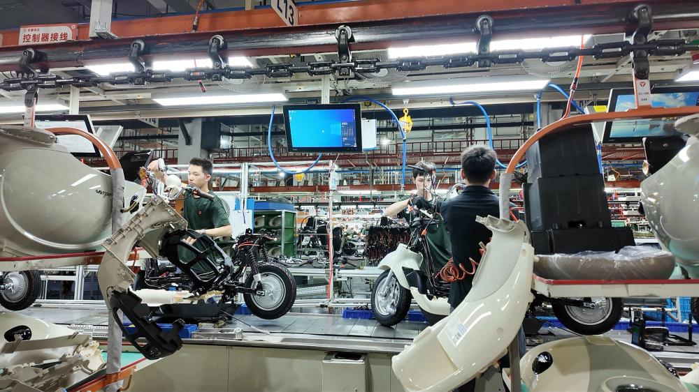 作为全球领先的电动两轮车品牌,雅迪在其总部所在地江苏省无锡市设有工厂。厂里的一条装配线每天可以生产1300辆电动自行车和电动踏板车,让参观者得以一窥中国的制造业实力。