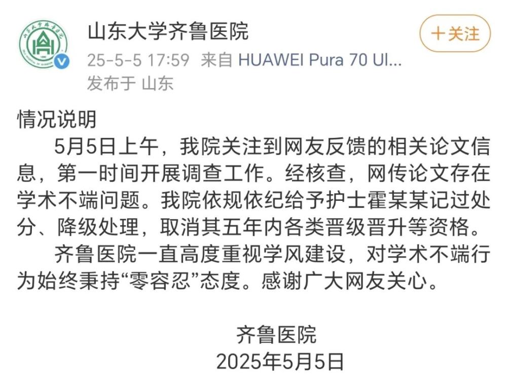 关于子宫肌瘤围手术期护理的论文争议,其作者所在单位发布情况说明