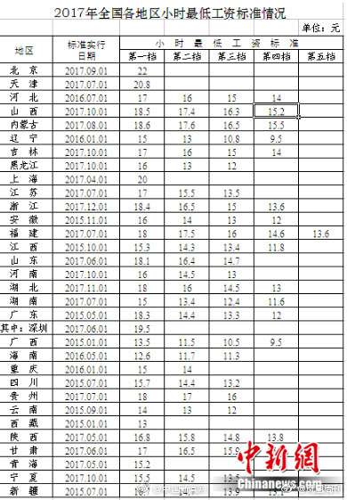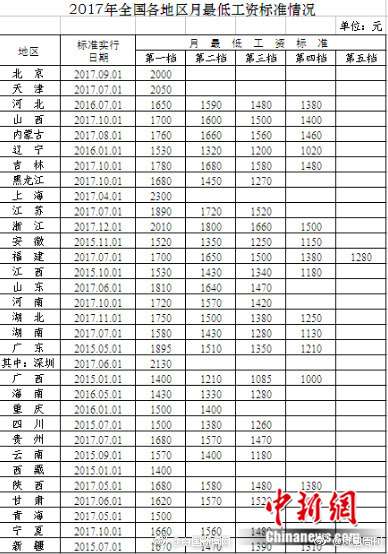2017年全国各地最低工资出炉 你的工资高出多少?