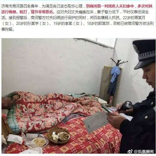 愤怒!济南四青年多次登门侮辱殴打残疾夫妇 只为取乐
