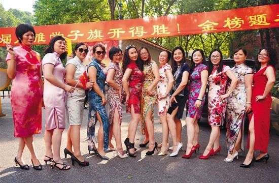 送考妈妈的旗袍,已经成为高考期间学校门口一道独特的风景。