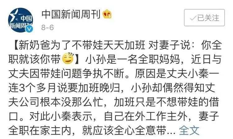 问及原因,这位爸爸理直气壮:你是全职妈妈,就该你来带!
